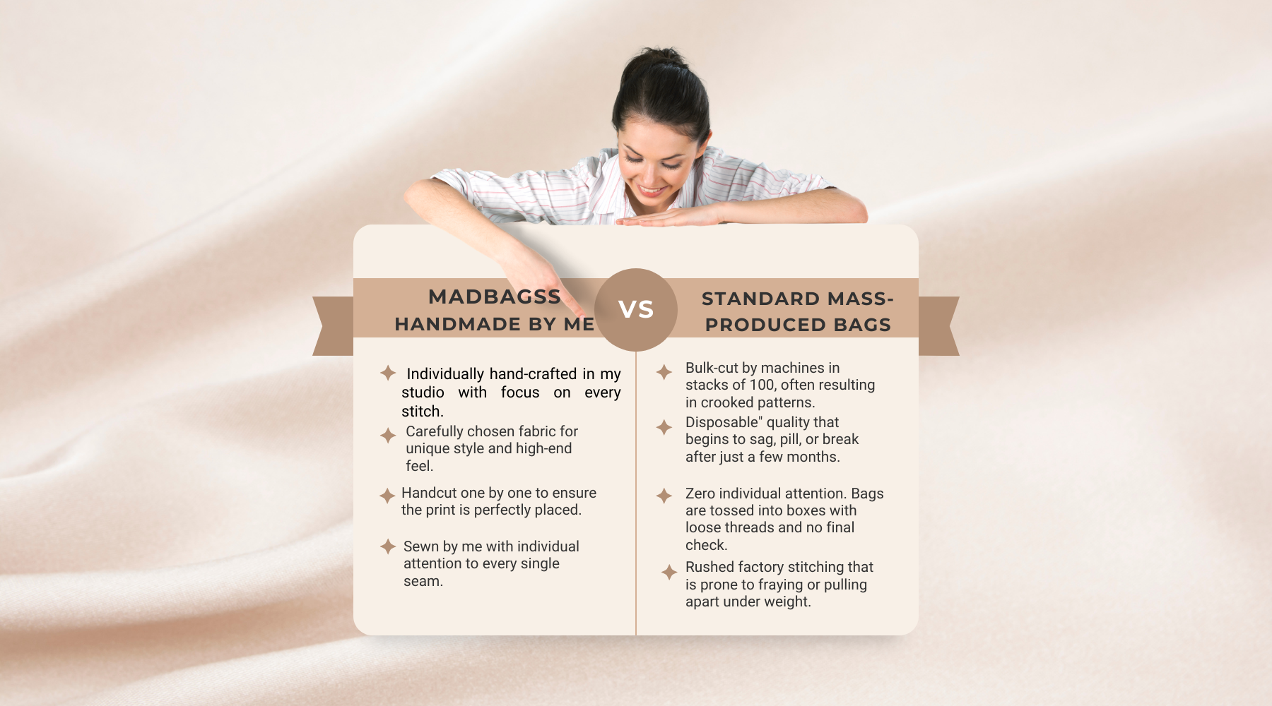 Madbagss is a sole-maker studio where every bag is hand-cut and sewn by a single artisan. I focus on high-quality construction and bold prints to create authentic slow fashion that is built to last. No factories or shortcuts—just intentional, handmade excellence from my studio to you.