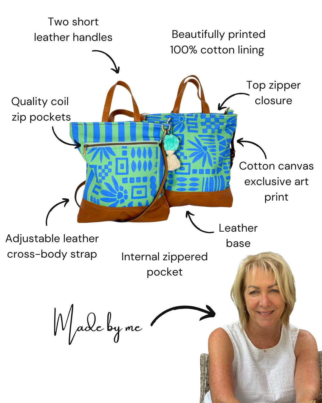 Printed cotton linings and trims may vary, from the photos, but they will be beautiful! All products are designed and handmade with attention to detail in our Melbourne studio.