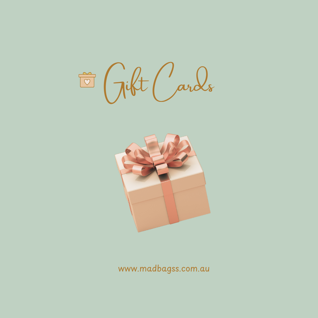 Not sure which handbag to choose? Give the gift of choice with a Madbagss Gift Card, perfect for any occasion! Whether it's for a birthday, anniversary, or just to show someone you care, our gift cards are the perfect way to let your loved ones pick their favorite handmade fabric and leather bag, crafted with care in Melbourne.